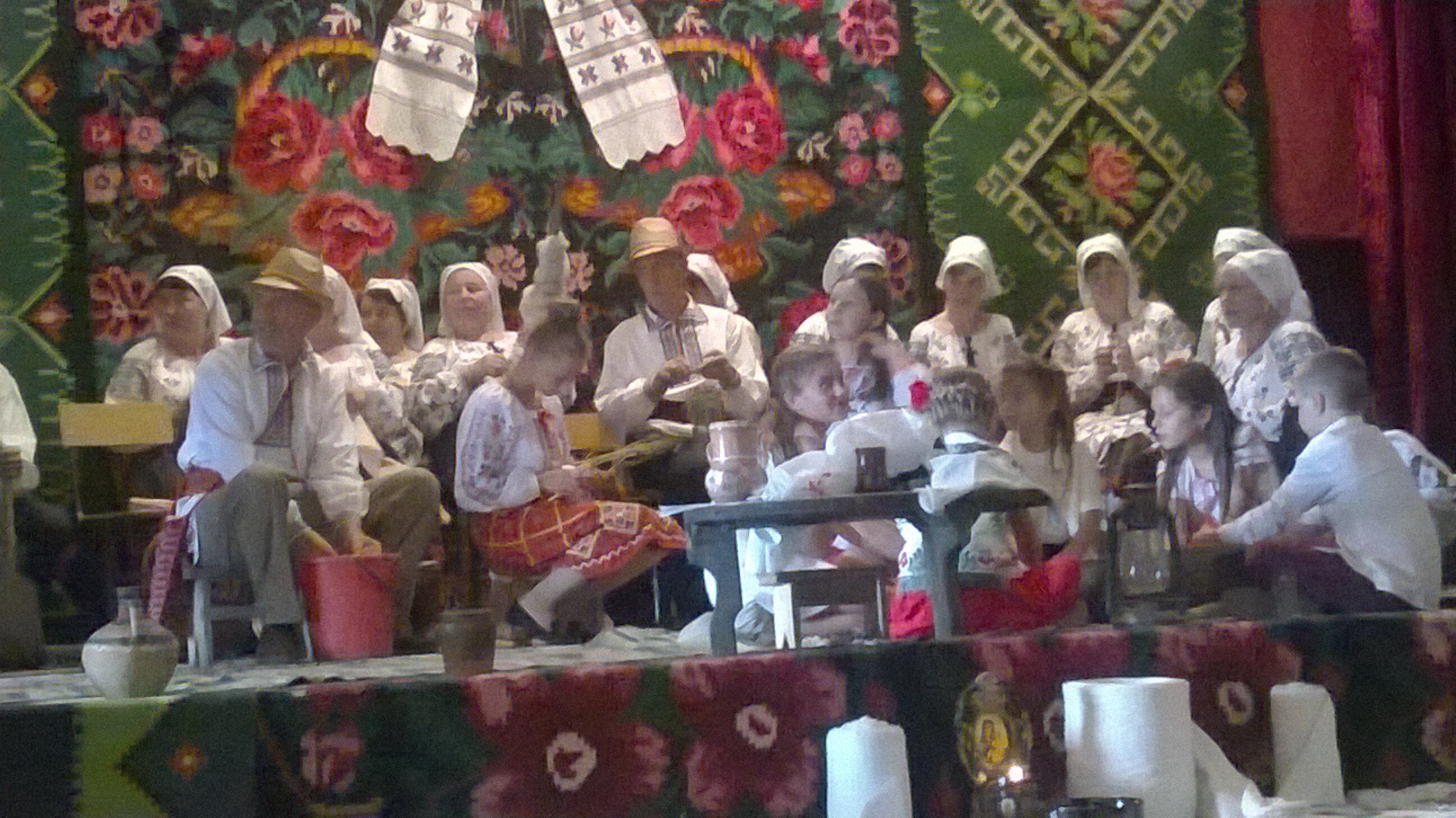 Centrul Cultural al satului pe care îl știm aspru și cazon, era de data aceasta plin de culori aprinse și atrăgătoare. Adulți, tineri și copii îmbrăcați în haine naționale trebăluiau de zor aducând ultimele retușuri scenei și spațiului din fața ei rezervat acțiunii ce avea să le umple de conținut. Culorile aprinse veneau de la covoarele, păretarele, prosoapele care împodobeau scena și avanscena; de la iile, pălăriile, broboadele și alte multe podoabe de factura populară purtate de actorii și actorițele originalului eveniment. Ici-colo, în scenă și în preajmă puteau fi văzute lucruri care altă dată erau indispensabile unei gospodării țărănești autarhice: covata pentru pâine, cociorva, lopata de cuptor, instrumente de confecționat și de gospodărit: toate colectate și aduse în spectacol din ambianța cotidiană a țăranului cuizăucean de altă dată.