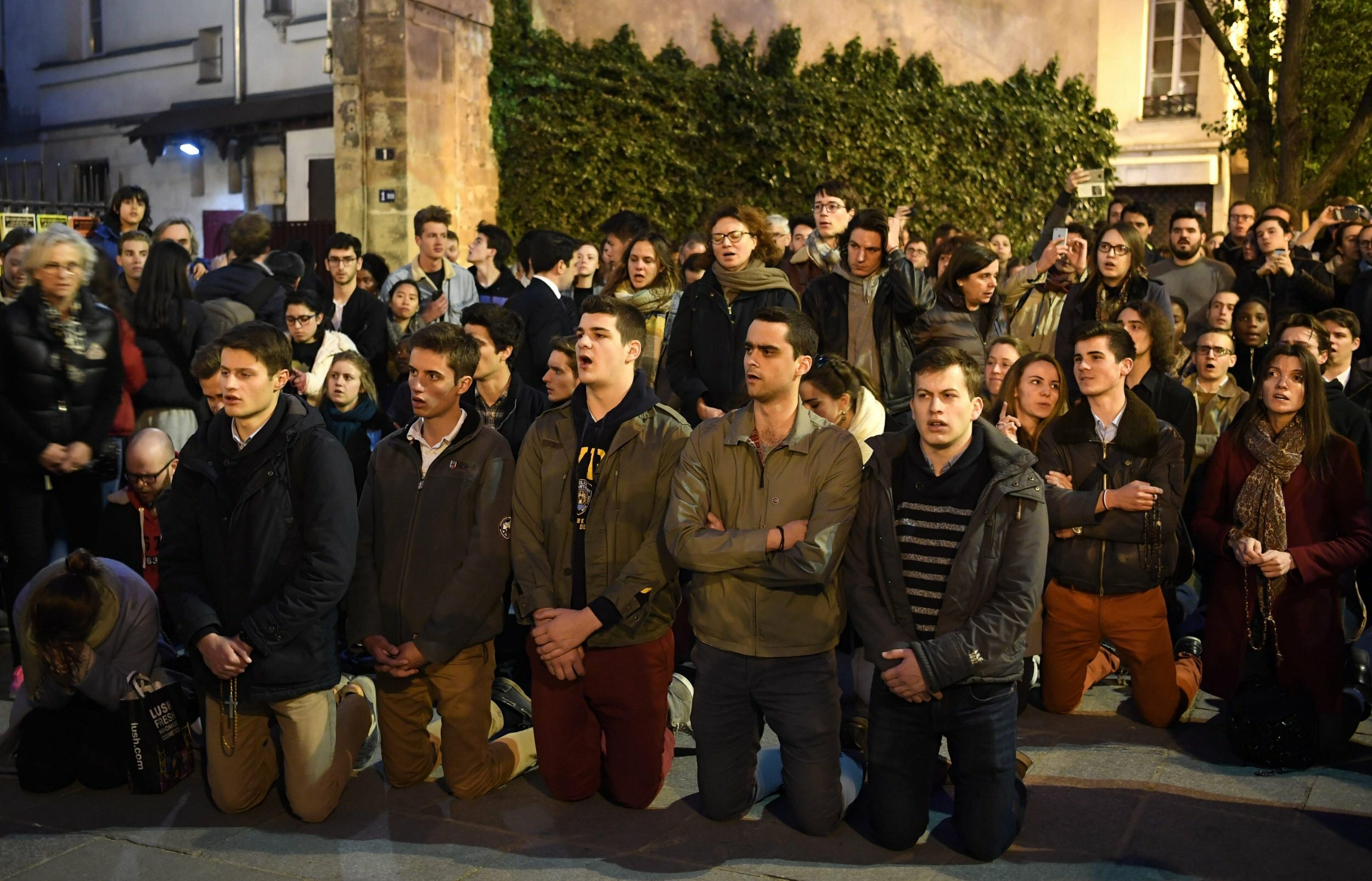 Camerele au coborât apoi cu obiectivul pe pământ, acolo unde, pe străzile din preajmă, pe podurile peste Sena, mii de parizieni aveau privirile focusate pe Catedrală. Nu le venea să creadă că ceea ce văd este o realitate. Ochii le erau ațintiți în sus, parcă a rugă, înlăcrimați, oarecum înfricoșați de tabloul care li se înfățișa. Priveau la incendiu ca la Apocalipsa venită peste ei. Pe față li se citea și mirarea a ceea ce se întâmplă, și vinovăția pentru ceea ce s-a întâmplat. Dar mai ales se citea resemnarea: ce fel de semn este acesta, ce va mai rămâne din bijuteria capitalei lor?